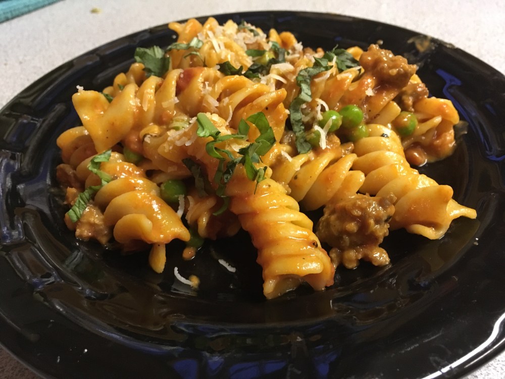 It was a filling one-pot meal. It was easy to follow Sarah’s directions. I chose to use hot Italian sausage. Derek loved it and ate up all the leftovers. He’s already requesting this one again.