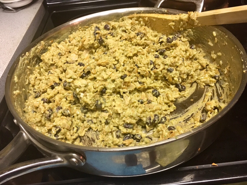 I wasn’t sure about the cilantro based cream, but you could absolutely taste the cilantro in the final dish. Yum! Here’s what the dish looked like right before I added the cheese and slipped it into the oven.