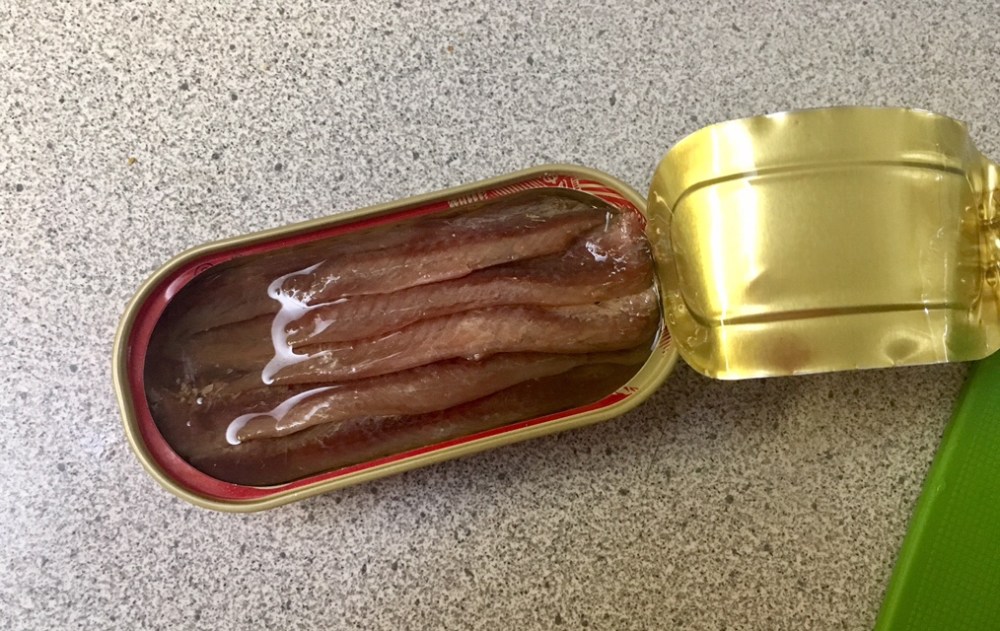 Then you mix up the topping. Another new ingredient I’ve never used – anchovy fillets! Hmm…