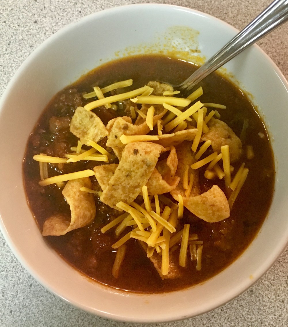 Being from Cincinnati means I understand that chili can take on different forms. This Texas style version may not have beans, but it certainly has flavor! It was easy to put together and will make for great leftovers. The final toppings are absolutely required for the complete chili experience.