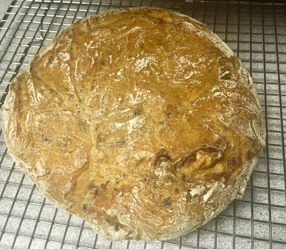 Now, I am an avid watcher of the Great British Baking Show and I’m confident Paul would tell me this loaf was over-prooved, but I am a full-time working mom with four kids! It tasted exactly what you would think a rosemary-walnut bread would taste like. And it was good! Also, I love that it used whole wheat flour.