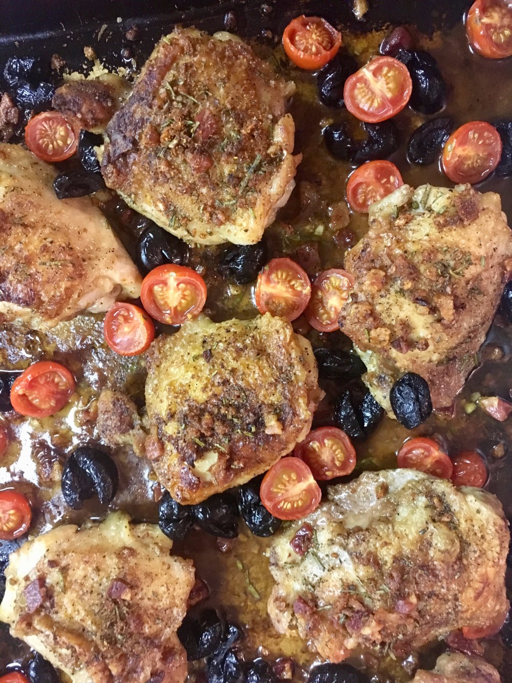 I’m pleased to say this was a successful dish. We are one of those houses who have been limited to eating only boneless, skinless chicken breasts, but now we have branches out! The flavor was great and my husband liked the olive-tomato taste. This one will stay on the regular meal plan menu.