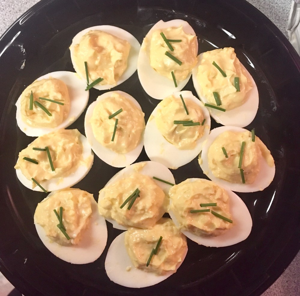 For the New Year’s Eve party that we attended, I took these deviled eggs.