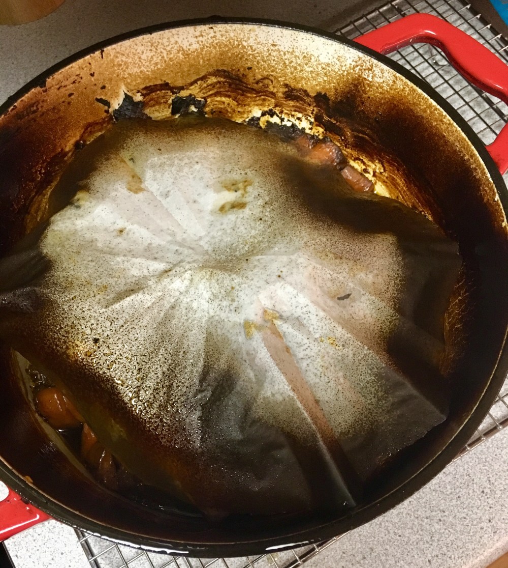 I used the parchment paper technique. Here it is right after I removed the ribs from the oven.