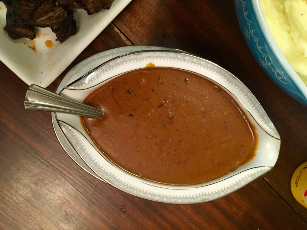 I did also make the sauce, but we kept it separate to eat on a mashed potato side dish. I had a much better result today than on Thanksgiving when I let the water boil away.