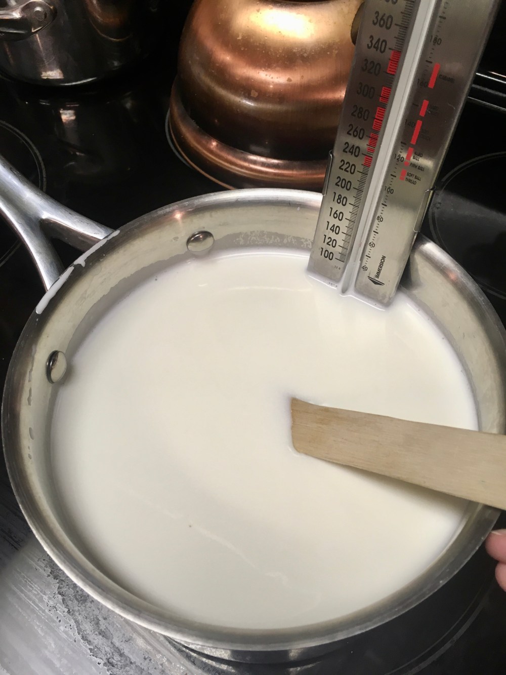 Boiling the milk.
