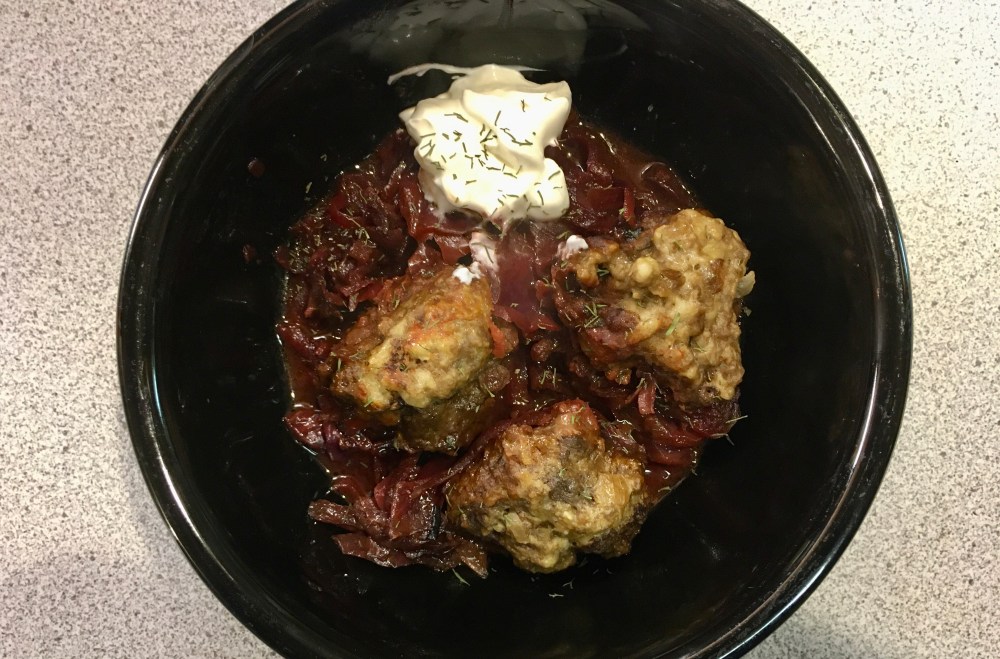 Sara’s comments say her husband can eat borscht hot or cold. My husband and I both agreed we couldn’t eat it cold, but it was a good dish piping hot!