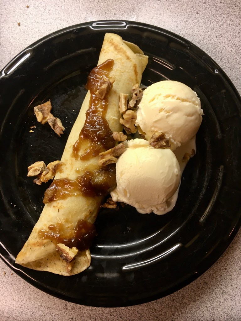 Sara’s method took me step by step, including great directions on how to make the crepes. My husband was even surprised with this final dish. I had to laugh when I looked back at the notes I wrote about this dessert. I don’t typically write things like this after making a recipe. Usually my notes are much more detailed about what to keep and change for the next time.
