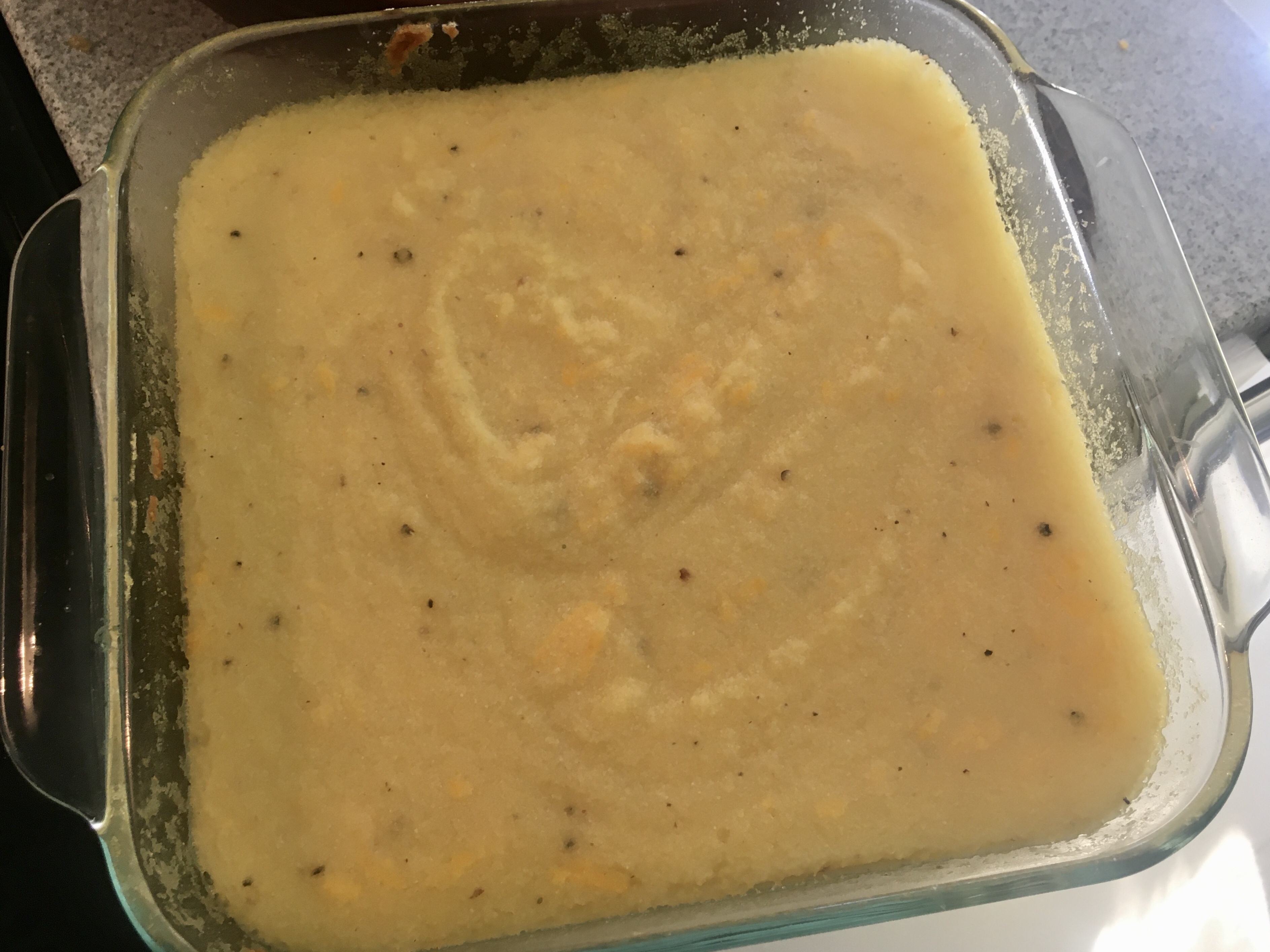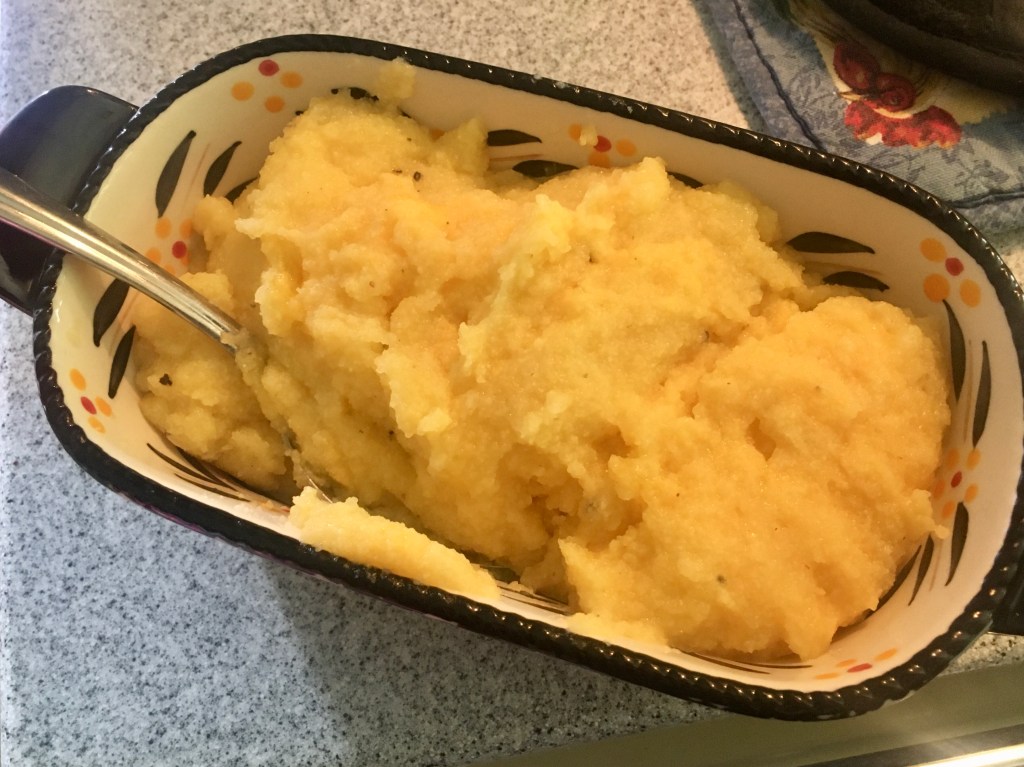 I made a different polenta recipe one other time and really did not care for it. It was bland and tasteless and took a long time to cook. This version came together much quicker and most of the time was spent in the oven. I did read Sara’s notes on the side and stirred in some cheese toward the end of the cooking time because I thought my family might be more likely to eat it. And, they were. It was a nice side dish for dinner one evening.