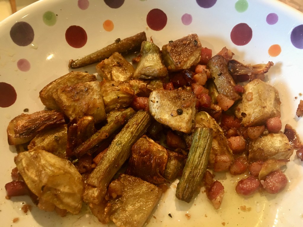 Have I converted and will I be cleaning my own artichokes from now on? No. Too much work for a small result. I’ll stick to buying these already cut up and cleaned for me.