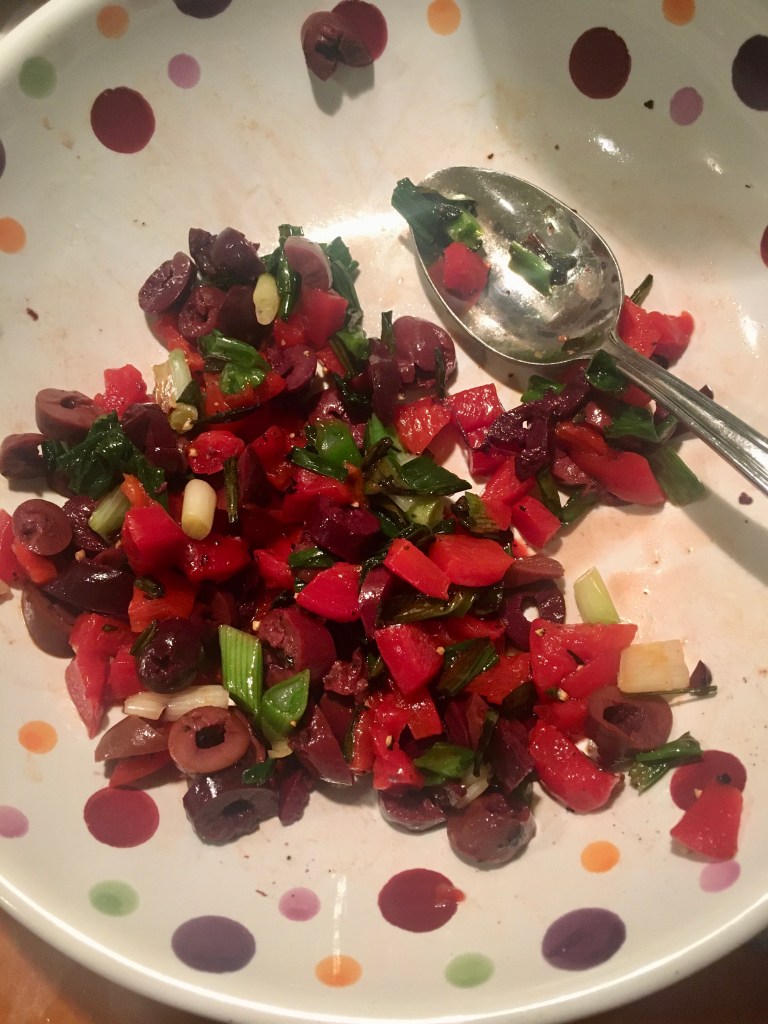I will admit that the olive and pepper mix that went on top of the sandwich was just beautiful! I wish I had snagged a picture before I added the cheese.
