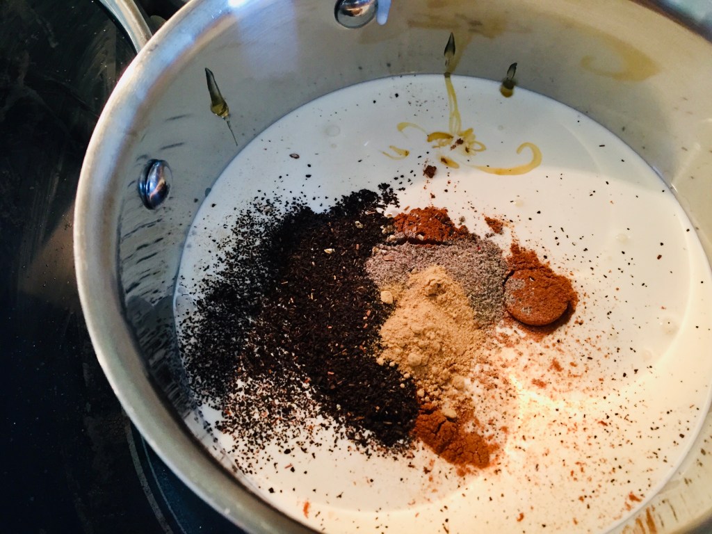 The process was a bit mesmerizing. Look at those beautiful spices in the pan before I gave it a stir.